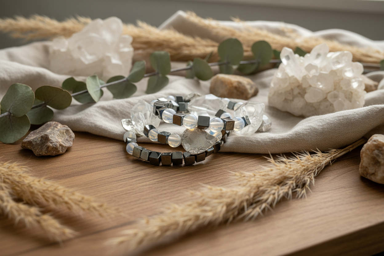 - Hematite - Known as the stone of grounding and protection, hematite helps absorb negative energy and promotes balance, courage, and strength. Provides emotional resilience and keeps you centered during challenging times.