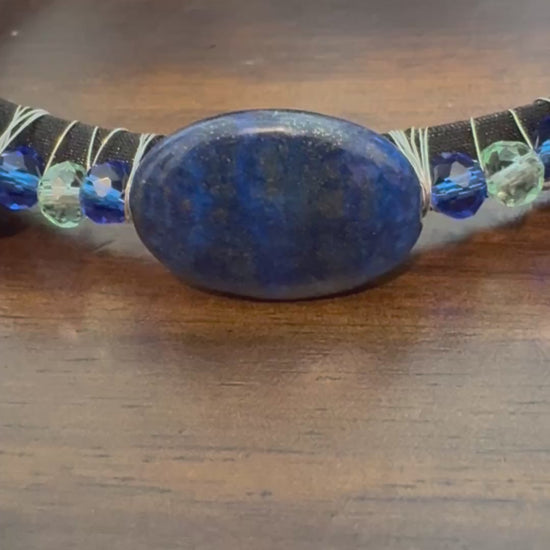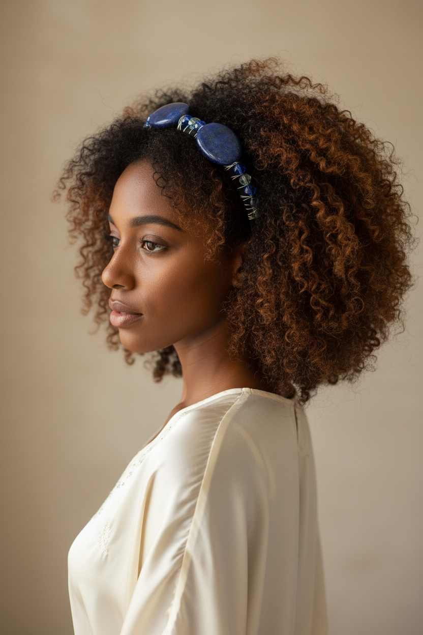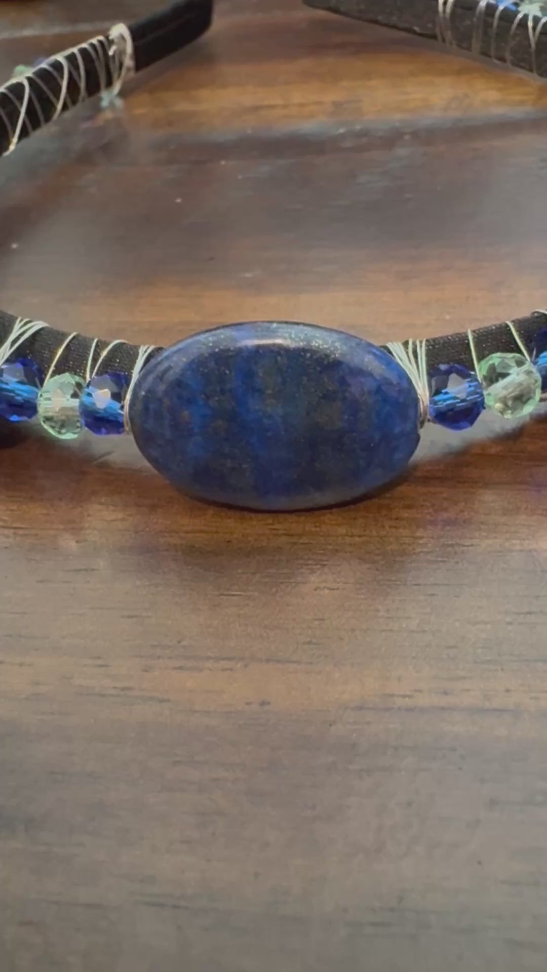 Crown yourself in ancient wisdom. The Halo headband is a one-of-a-kind wearable sculpture — hand wire-wrapped with genuine lapis lazuli, a stone revered for millennia as a symbol of truth, intuition, and inner royalty.