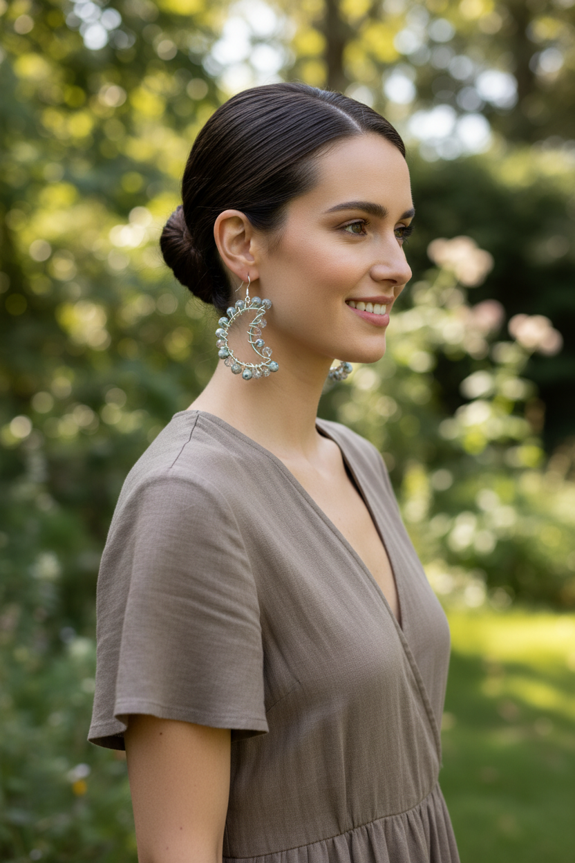 - Moon-shaped gemstone design