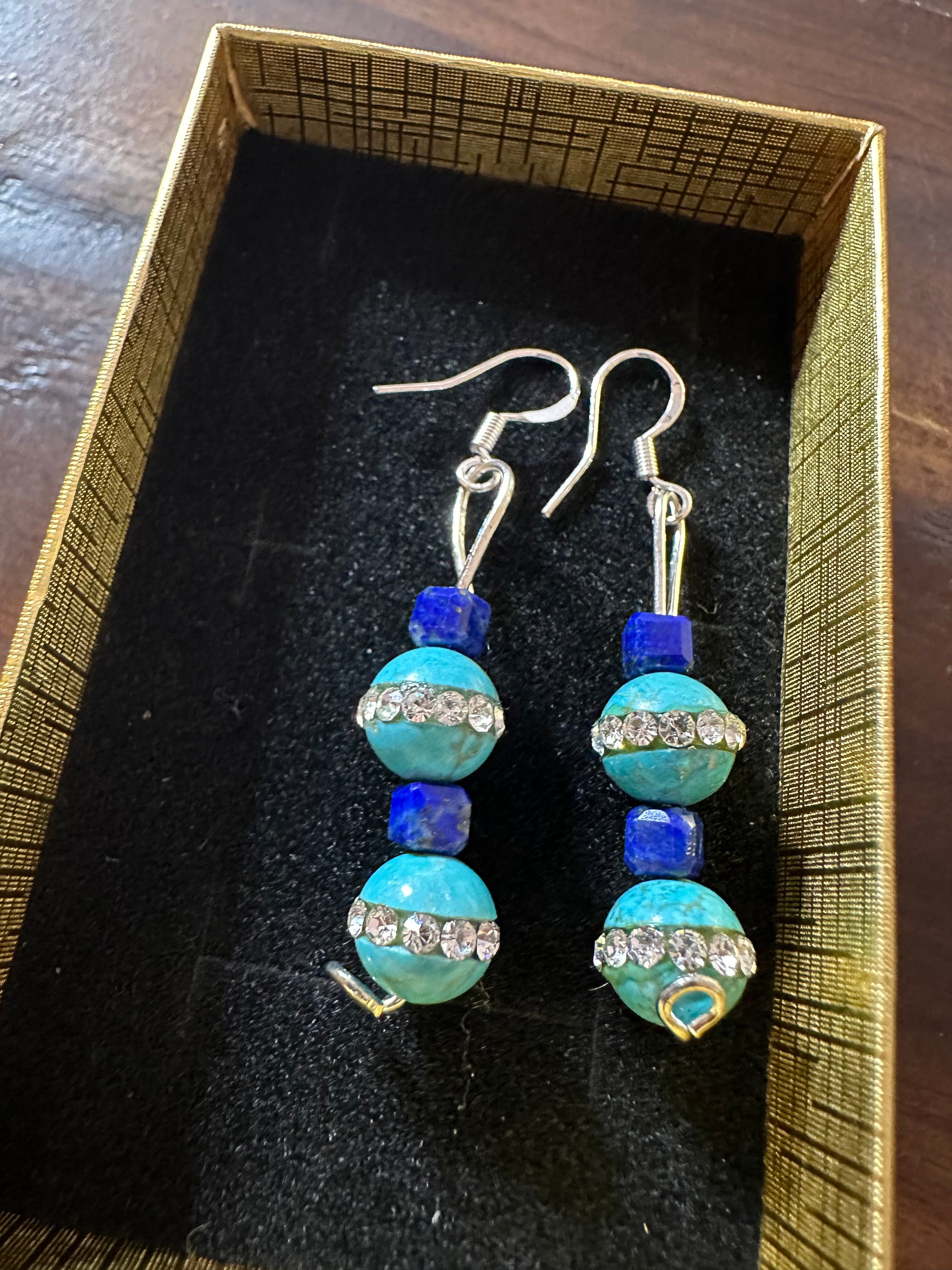 Elevate your style with these stunning turquoise and lapis lazuli earrings, handcrafted to showcase the natural beauty of each stone. The rich blue tones of lapis lazuli blend harmoniously with vibrant turquoise, creating a bohemian statement piece that's perfect for any occasion.