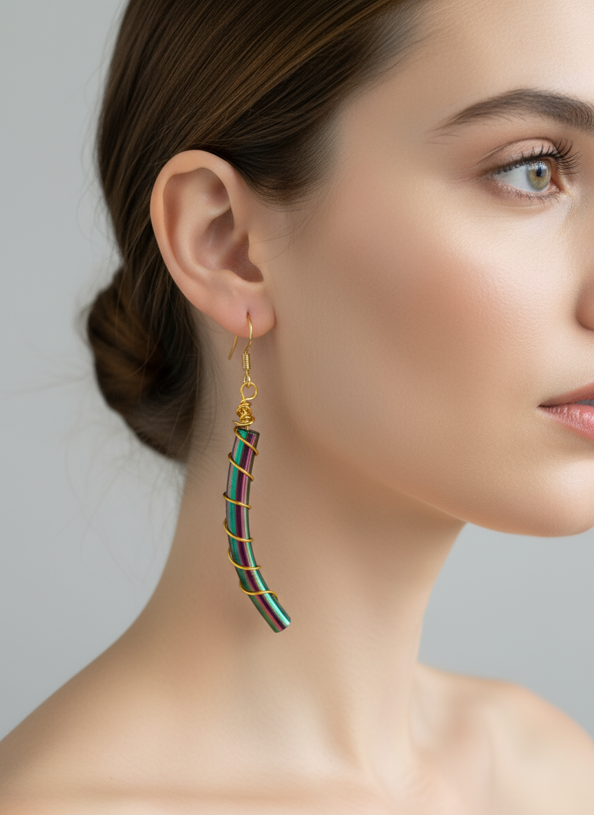 Introducing Eye Candy, a sparkling spectacle that will make your eyes twinkle! Crafted from hematite wire, it's wrapped in 24 karat gold-plated copper, giving you a luxurious feel without the hefty price tag. Get ready to bat your lashes at the compliments you'll receive!