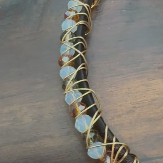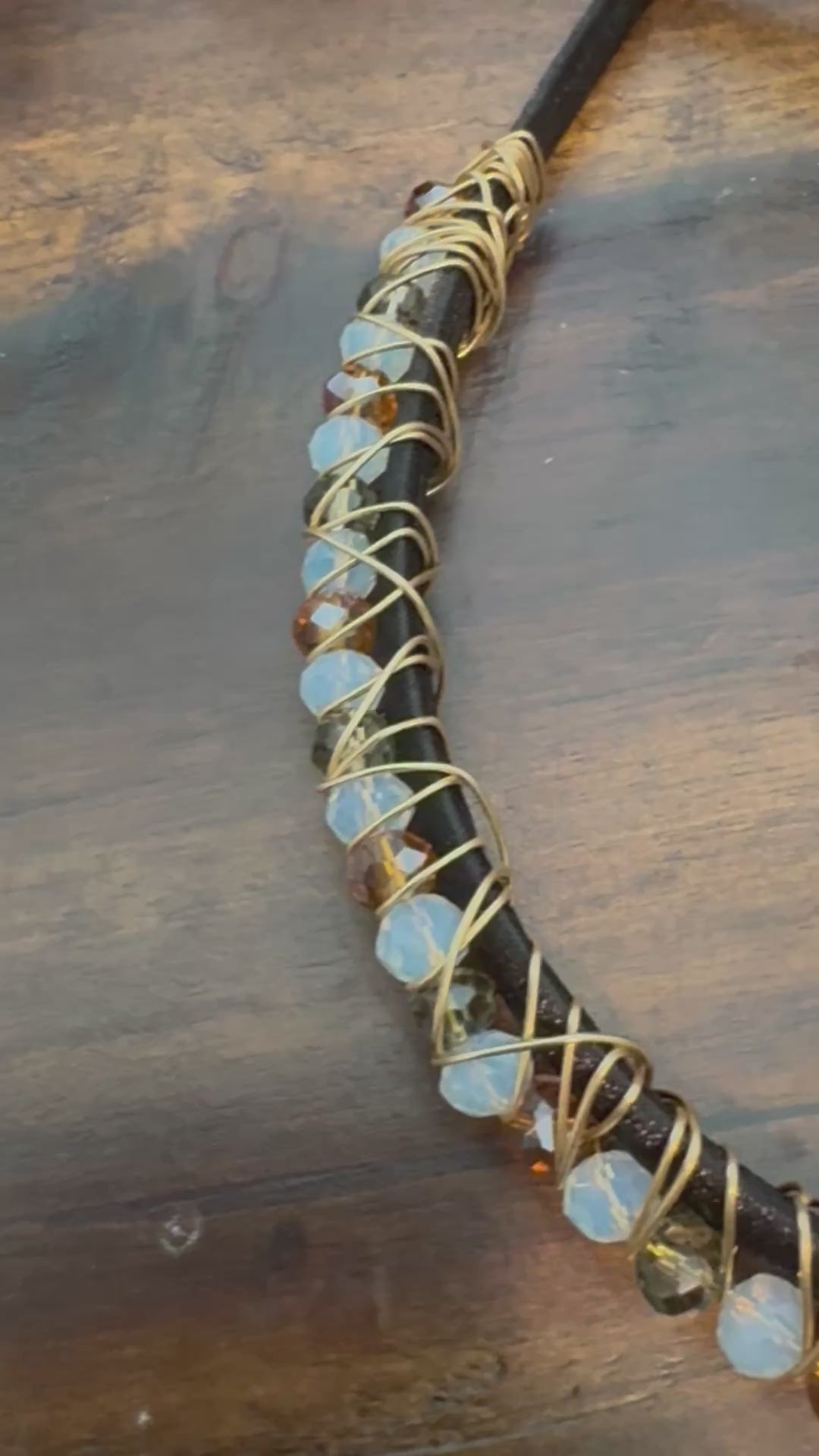- Natural jade + wire-wrapped crystal construction