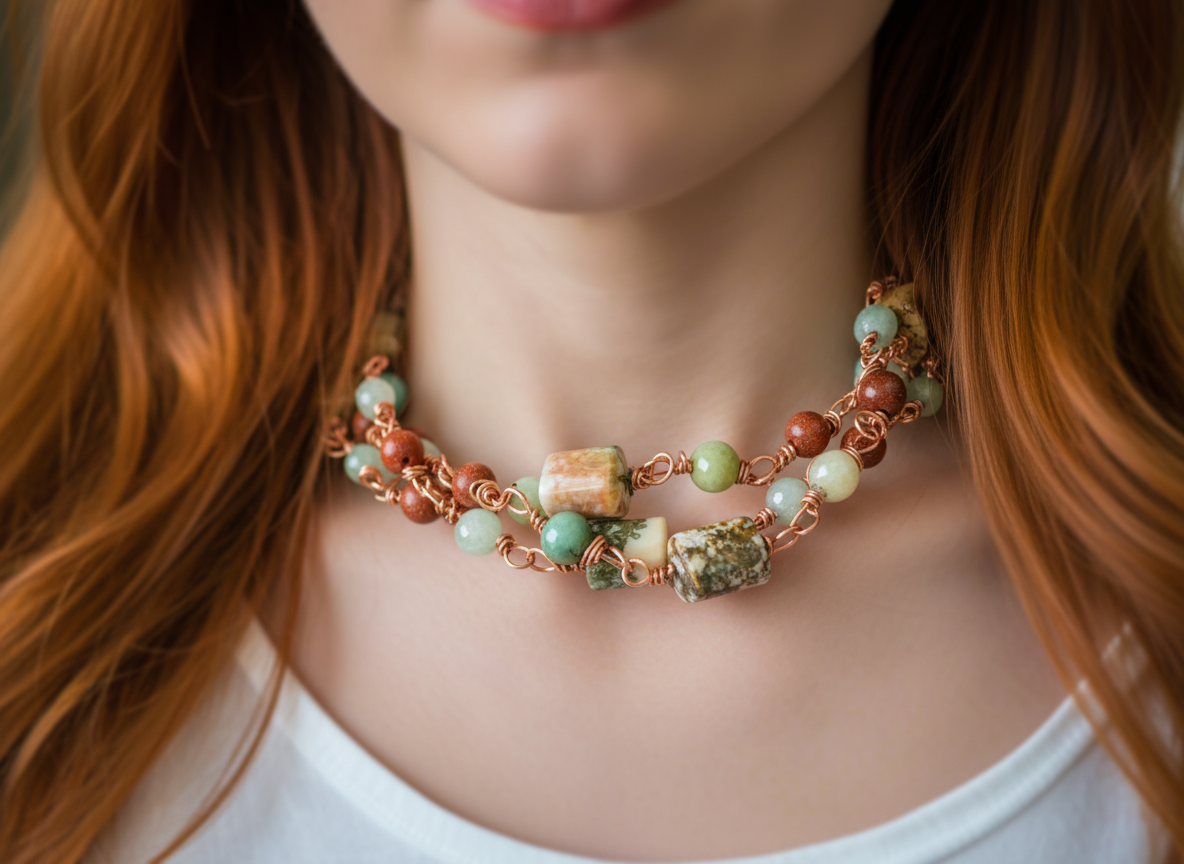 This beautiful, handmade necklace is sure to turn heads wherever you go! Crafted with jasper and goldstone, its adjustable up to 40-inches length makes it perfect for any occasion - whether you want to rock a choker, or just drape a stunning strand around your neck. Wrap it around your wrist for an unexpected bracelet - the possibilities are endless!