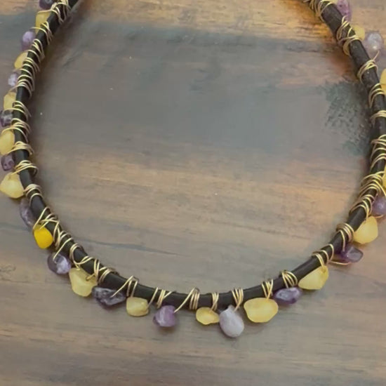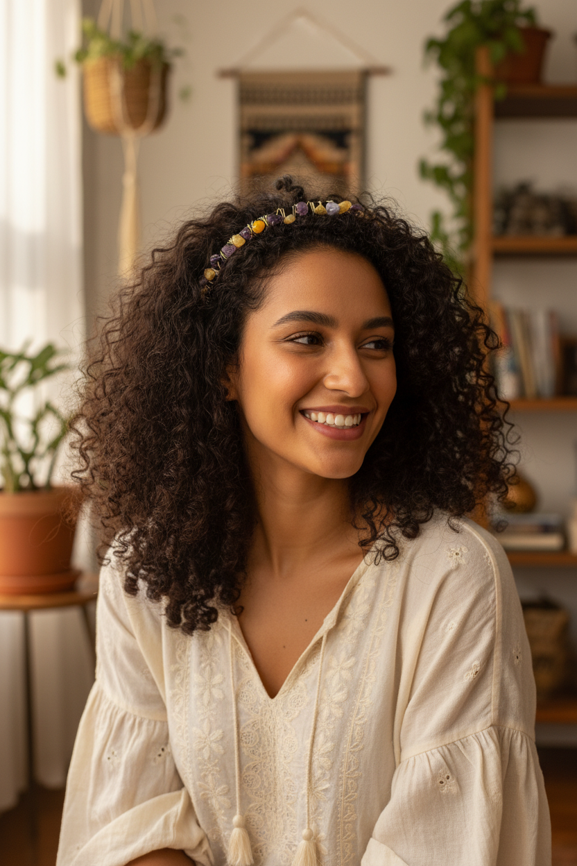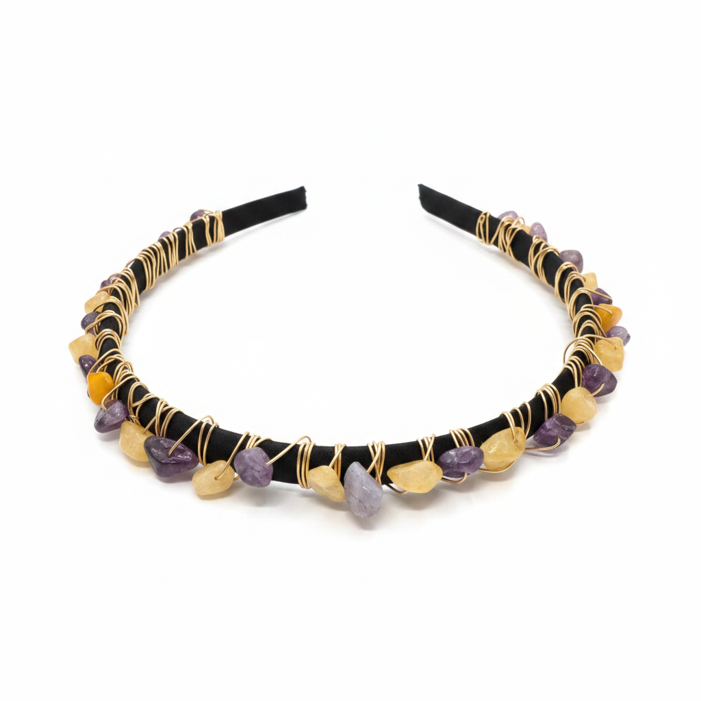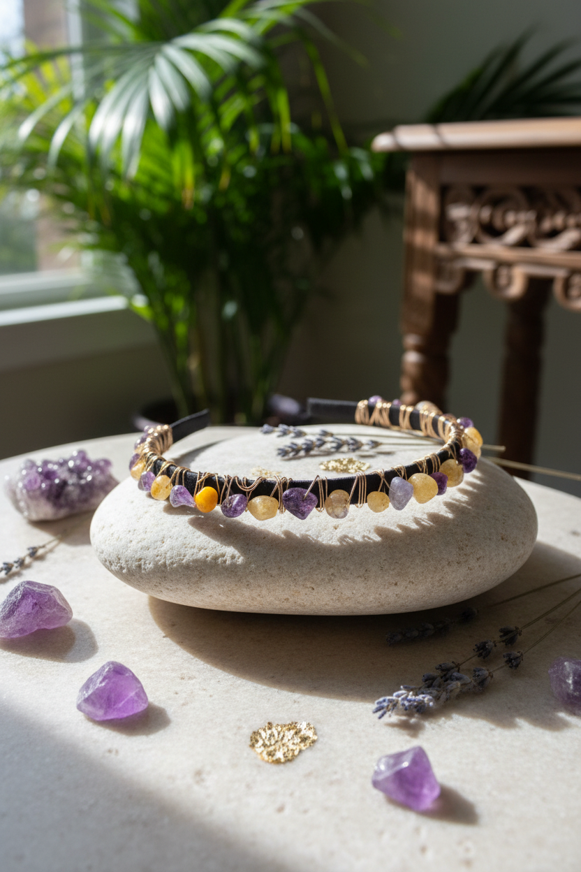 Amethyst & Citrine Crown Headband – Halo Line | One-of-a-Kind Handcrafted Gemstone Headband